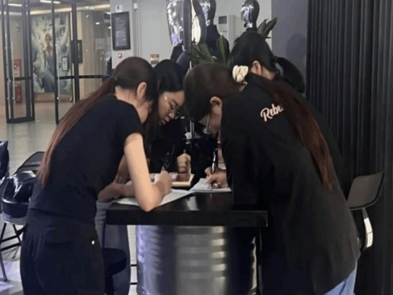 招聘会现场,企业代表们深入展示了各自品牌的独特魅力与发展前景,公司HR:Nana深入介绍M stat发展历程:从初创小团队成长为行业内具有影响力的时尚企业,在产品研发、设计等方面成果显著。公司氛围自由开放,办公环境兼具时尚感与舒适度,融合多元时尚与创新精神,目标打造国际品牌。互动环节中,M stat展示通勤、街头、淑女等服装系列,增进前来应聘的学生对其产品体系与市场定价的认知。