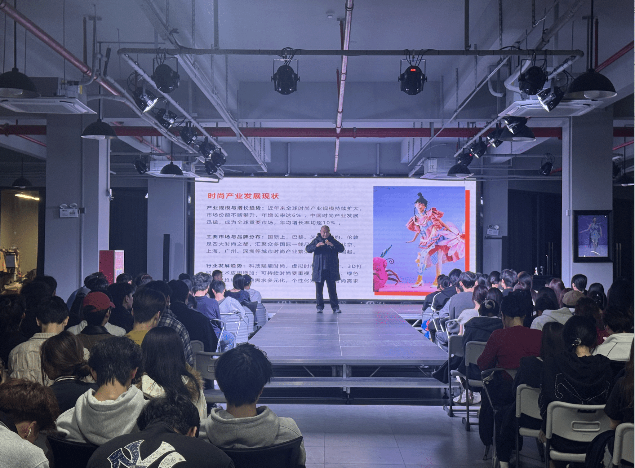 讲座中,延华导演以“理论+案例”的形式展开分享。他从服装表演的艺术内核出发,解析了秀场主题设定、模特动线设计、音乐灯光搭配等编导核心环节的逻辑与技巧;同时结合自身操盘的大型时尚赛事与时装周案例,阐述了时尚活动从前期策划、中期执行到后期传播的全流程运作模式。针对学生关注的“如何平衡创意表达与市场需求”“新人如何进入时尚编导行业”等问题,他也结合行业现状给出了具体建议,强调“专业人才既要懂艺术审美,也要具备产业思维与实操能力”。