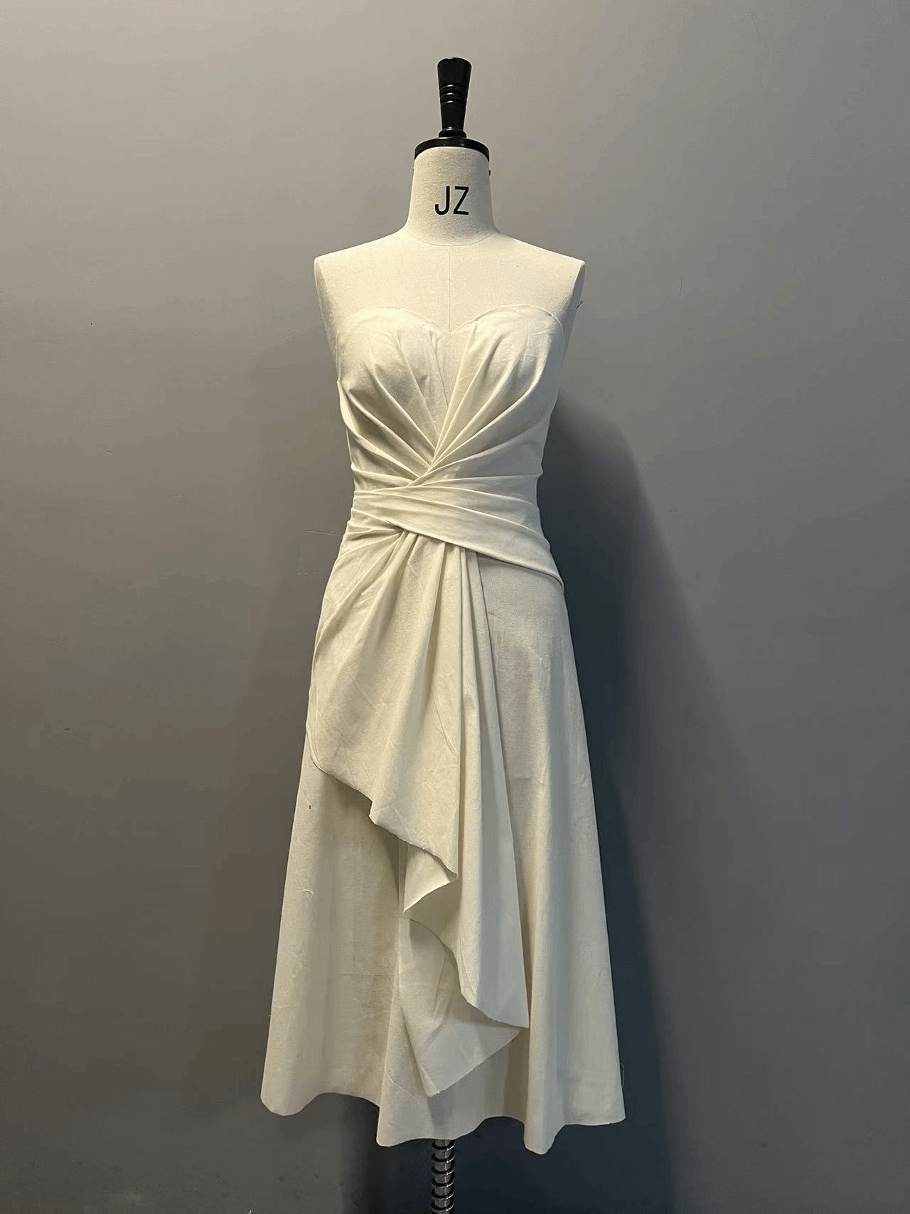 一片式结构以其简约纯粹的剪裁逻辑,褶皱工艺以其灵动多变的肌理语言,成为时尚设计中极具表现力的创作形式。本次大赛紧扣这一主题,鼓励学生通过折叠、缠绕、堆叠等立体裁剪手法,探索一片式褶皱元素的无限可能。参赛学子们围绕主题精心构思,将对时尚的独特理解、对工艺的精准把控融入作品创作中:有的以自然垂坠的褶皱模拟流水肌理,通过一片式剪裁的流畅线条呈现简约高级感等。每一件作品都凝聚着学子们的巧思与匠心,既展现了对立体裁剪技术的扎实掌握,更凸显了白云学子们敢于突破、勇于创新的时尚态度。