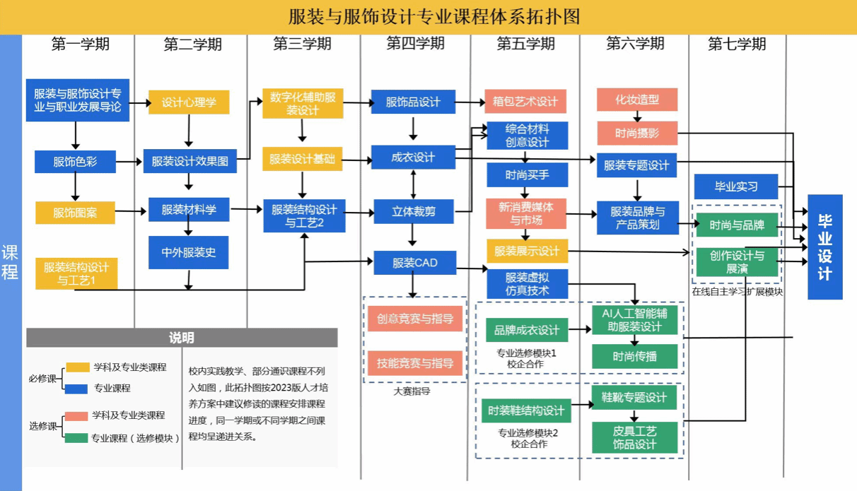 服装结构设计与工艺、服装设计基础、数字化辅助服装设计、服装设计效果图、服装材料与应用、立体裁剪、服装创意设计与工艺、服装CAD、服装虚拟仿真技术、服装专题设计